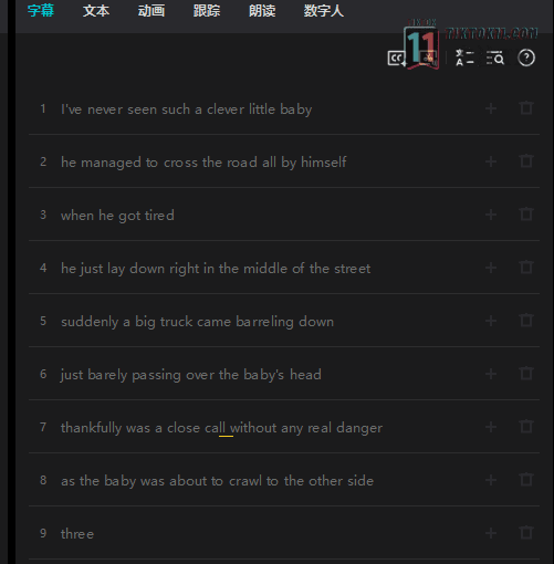 还有字幕里有一些原声片段,比如说,有个角色“啊”的大叫了一声。而这个内容我们是不需要配音的, 后期我们也可以把原片的内容剪辑进去就行了。