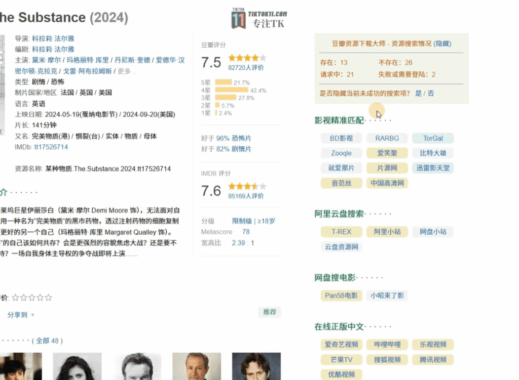 而要进行原创,我们还需获取电影的原片。这涉及版权问题,在此不便详述。但大家可以安装一个浏览器插件——“豆瓣资源下载大师”。安装后,在豆瓣电影网页的右侧会出现如下图所示的链接,点击即可跳转到所需资源。