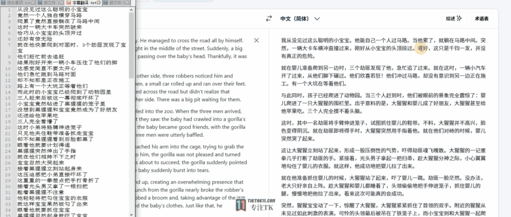 那么这个时候,原始的这个中文文案就很关键了,因为有一些文案可能识别错了,这个时候你就需要手动修改一下,不然你翻译出来的语言也是牛头不对马嘴。还有一些情况则是,过于本土化的中文语言可能在翻译的过程中会造成歧义,另外有些作品是会混合一些电影原声,也要进行处理,不然就会都被识别出来了。