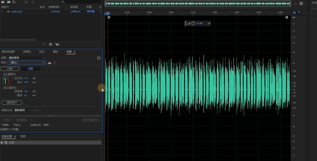 把声音拖进AU,之后在左侧的面板里选择诊断,之后设置为删除静音