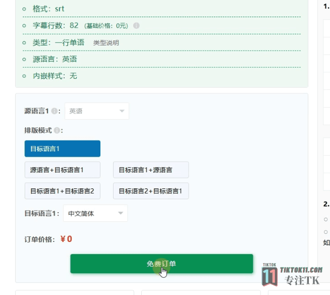 选择目标语言为中文,之后它就可以直接给你生成一个中文的字幕SRT文件