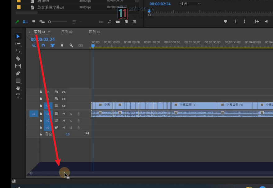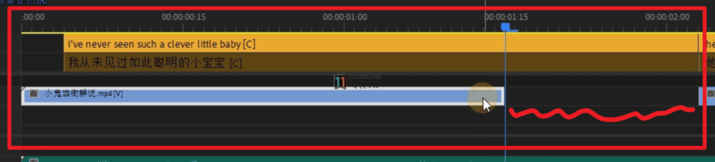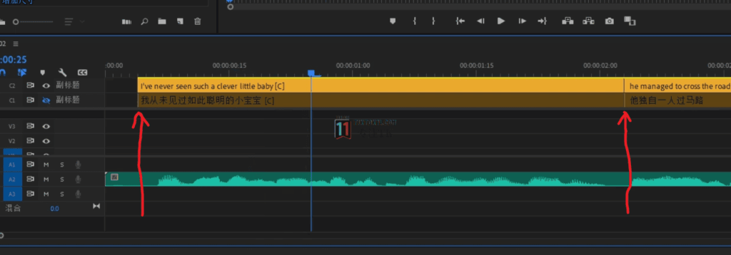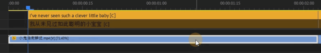 这个时候放进去了2个字幕,一个中文的一个英文的,还有刚刚取得的配音文件,思考一下,到这里看到了什么?