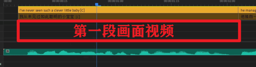也就是说,在这里我们只要放上我们对应内容的画面是不是就匹配上了?比如说第一个字幕是【我从未见过如此聪明的小宝宝】,所以在这里我们只要放上一个比较对应这个文案的画面,是不是就可以了?