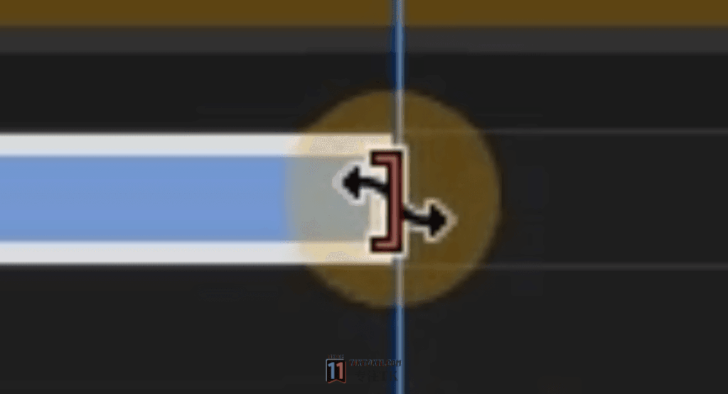 我们按下快捷键R,这个时候在视频轨道的后面光标会显示下面的样式