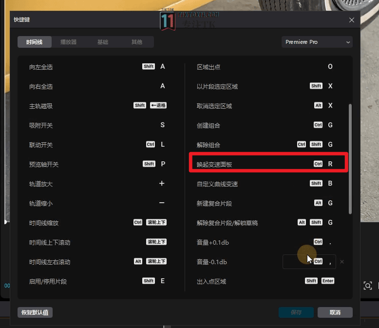 那怎么办?这个时候就要用到PR的一个功能–调速。